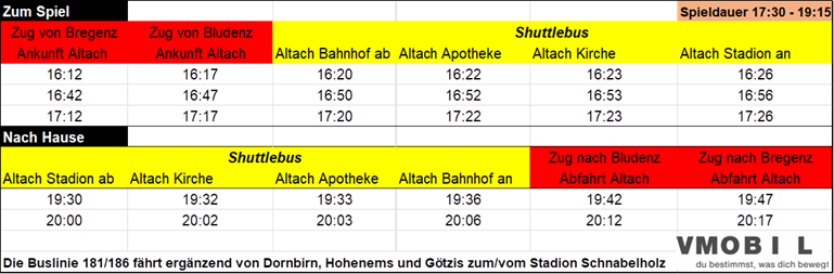 Anreise: Wir empfehlen wie immer eine frühzeitige Anreise mit den öffentlichen Verkehrsmitteln, zu Fuß oder mit dem Fahrrad zum Stadion. Zur Entlastung des Linienverkehrs wird es auch wieder ein Shuttlebus im Einsatz sein. Die Abfahrtszeiten findet ihr unten.