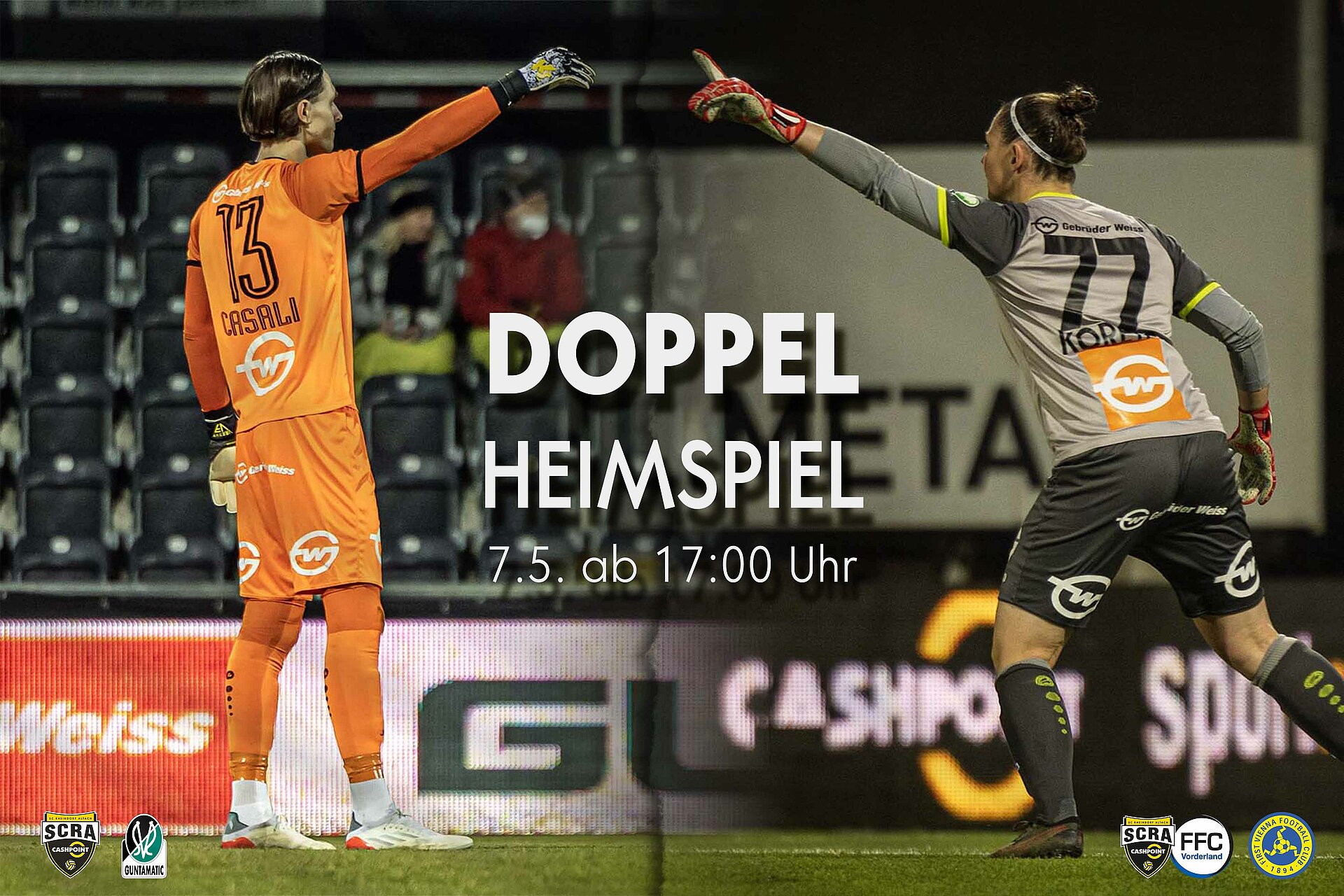 Am 7. Mai 2022 ist die CASHPOINT Arena Location für eine Österreich-Premiere: Erstmals gehen ein Herren- und ein Frauen-Bundesligaspiel direkt hintereinander im selben Stadion über die Bühne.