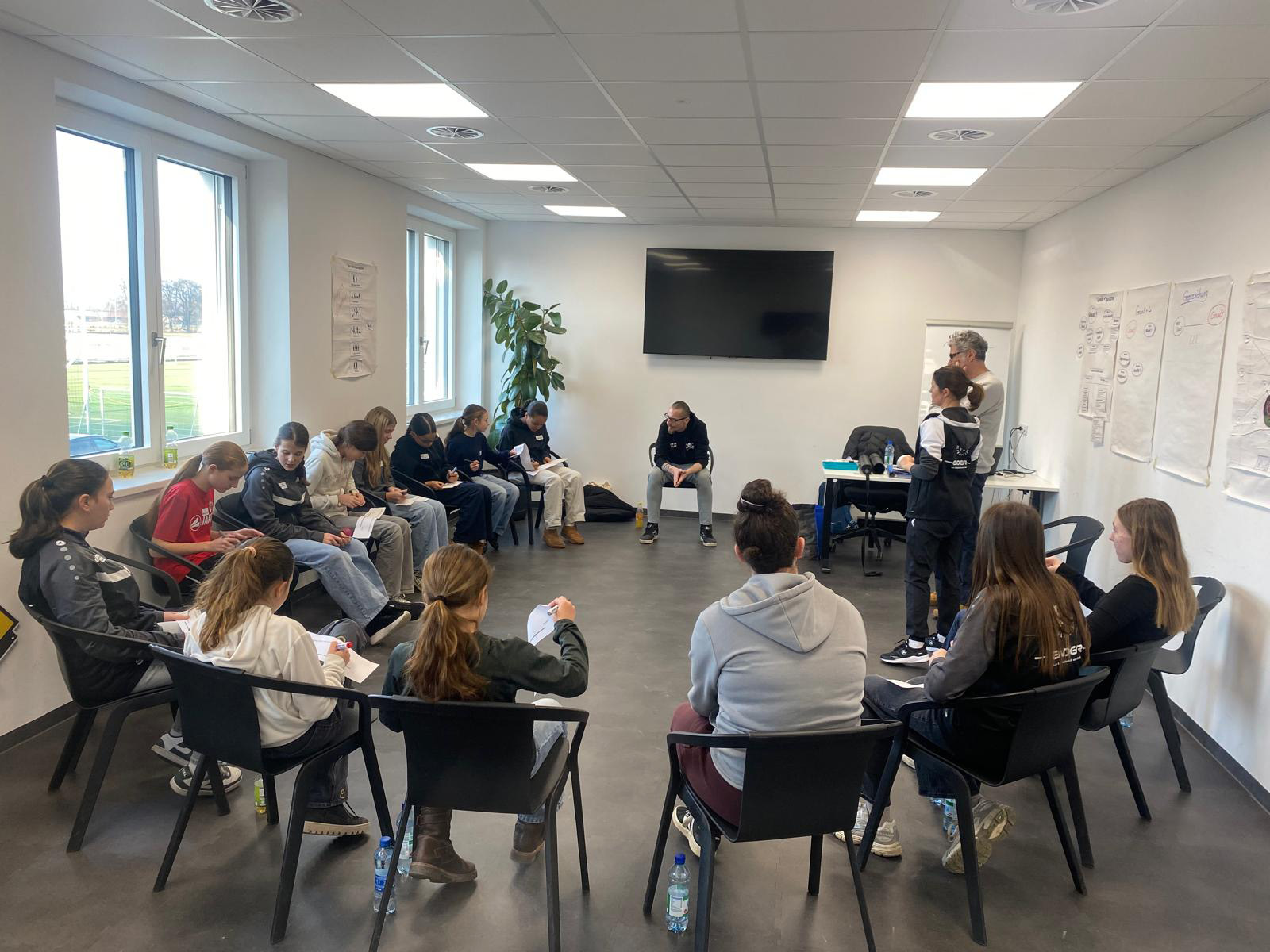 Neben theoretischem Input standen Rollenspiele, Gruppenarbeiten, Diskussionen und Übungen im Mittelpunkt. Alle Inhalte wurden gezielt mit Beispielen aus dem Fußball verknüpft, um einen direkten Bezug zum Trainings- und Spielalltag herzustellen.