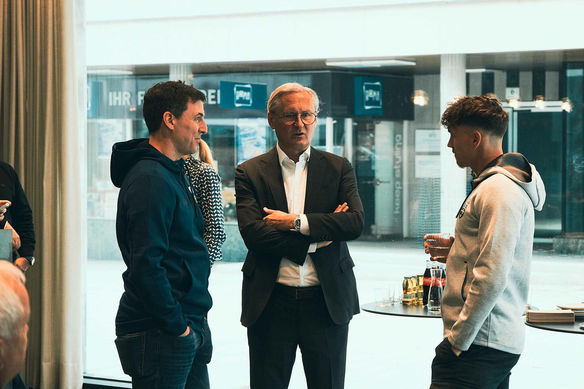 Nicht in den Altacher Presseräumlichkeiten, sondern in der Private Banking Filiale der Volksbank Vorarlberg wurde am Freitag über das Heimspiel des SCR Altach diskutiert. Joachim Standfest und Dominik Reiter sind überzeugt, dass die Mannschaft den Schwung aus dem Derby mitnehmen kann und die Zeit für den ersten Heimsieg 2024 ist.