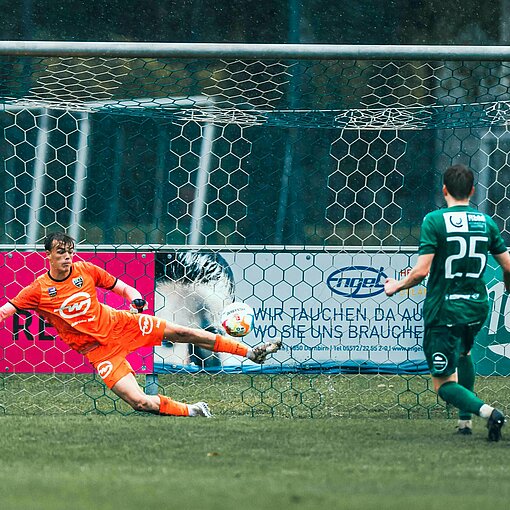 Piffer ließ sich weder von den schwierigen Bedingungen noch von den Dornbirner Offensivbemühungen aus dem Konzept bringen. Gleich zweimal konnte sich der Youngster in der ersten Halbzeit in Eins gegen Eins-Situationen auszeichnen, dazu parierte er mit dem Halbzeitpfiff einen Elfmeter des DSV mit dem Fuß.