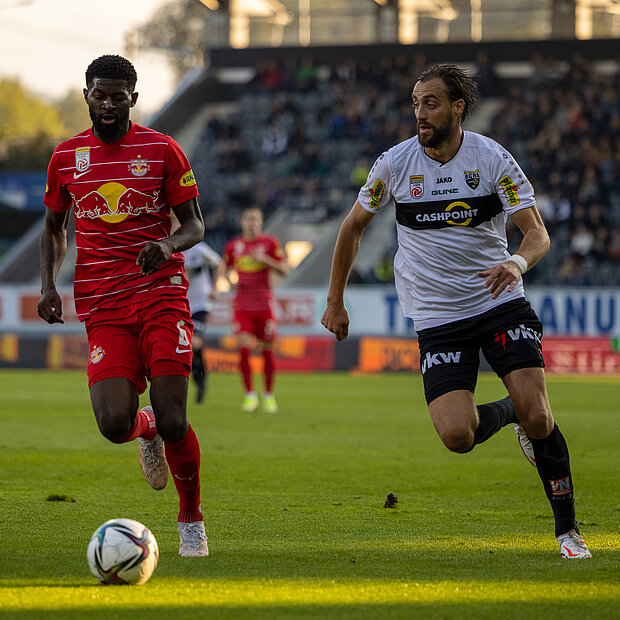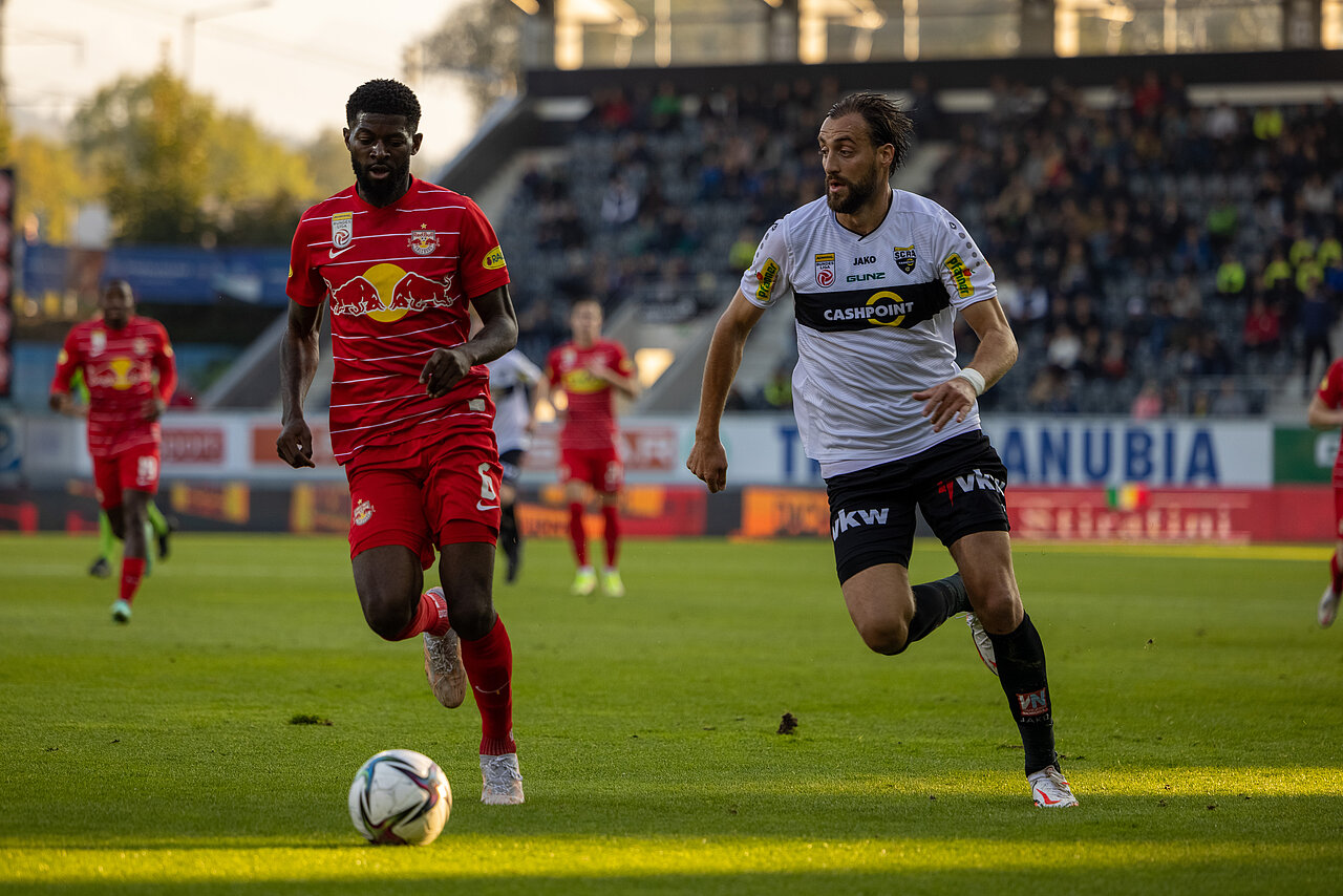 Dann nahmen aber wieder die „Bullen“ das Zepter in die Hand. Bei einer Kjaergaard-Chance rettete Pape Alioune im allerletzten Moment. Eine viertel Stunde vor Schluss stellte Damir Canadi dann um. Mit Noah Bischof und Felix Strauss brachte er zwei frische Kräfte. Dazu formierte sich der SCRA in einer Dreierabwehrkette und mit zwei Stürmern. Bischof war keine zwei Minuten auf dem Feld, als er erstmals in den Salzburger Strafraum eindrang und unsanft gelegt wurde. Nach Meinung des Schiedsrichterteams war das Tackling allerdings noch im Bereich des Erlaubten.