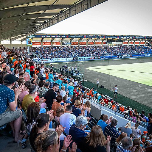 Bereits 2022 war SingMit zu Gast in der CASHPOINT Arena. Schon damals sorgten die Kinderchöre des Landes vor einer atemberaubenden Kulisse für Staunen. Fast 50 Kinderchöre und Schulgruppen aus ganz Vorarlberg treffen am Samstag zum ersten Mal zusammen. Nur wenige Stunden vor dem Event findet die erste und einzige gemeinsame Probe der knapp 2000 Kinder statt, bevor der große Auftritt dann um 18:00 Uhr auf der Südtribüne des Stadions beginnt.