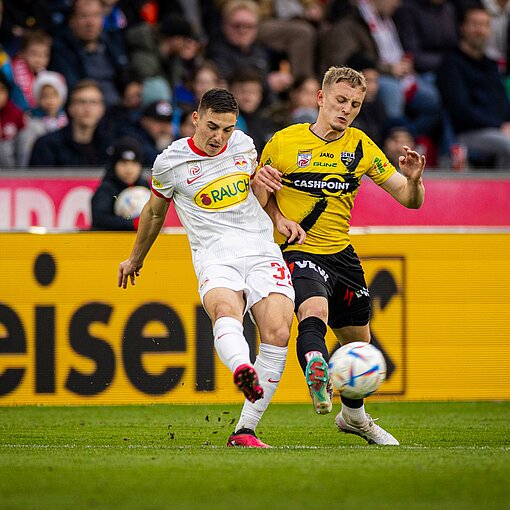 Natürlich erhöhten die Mozartstädter nach dem Rückstand den Druck, aber die gesamte Altacher Mannschaft arbeitete weiter außerordentlich gut gegen den Ball und war präsent in den Zweikämpfen. Sieben Minuten vor dem Ende sollte den Hausherren aber doch noch der Ausgleich gelingen. Eine weite Flanke flog in den Altacher Strafraum, Sesko löste sich von seinem Gegenspieler und köpfte aus kurzer Distanz ein – 1:1. Der Treffer wurde zwar vom VAR wegen eines möglichen vorangegangenen Foulspiels überprüft und beorderte den Schiedsrichter zur Sichtung der Szene an die Seitenlinie. Dieser konnte keine Regelwidrigkeit entdecken und der Ausgleich zählte.