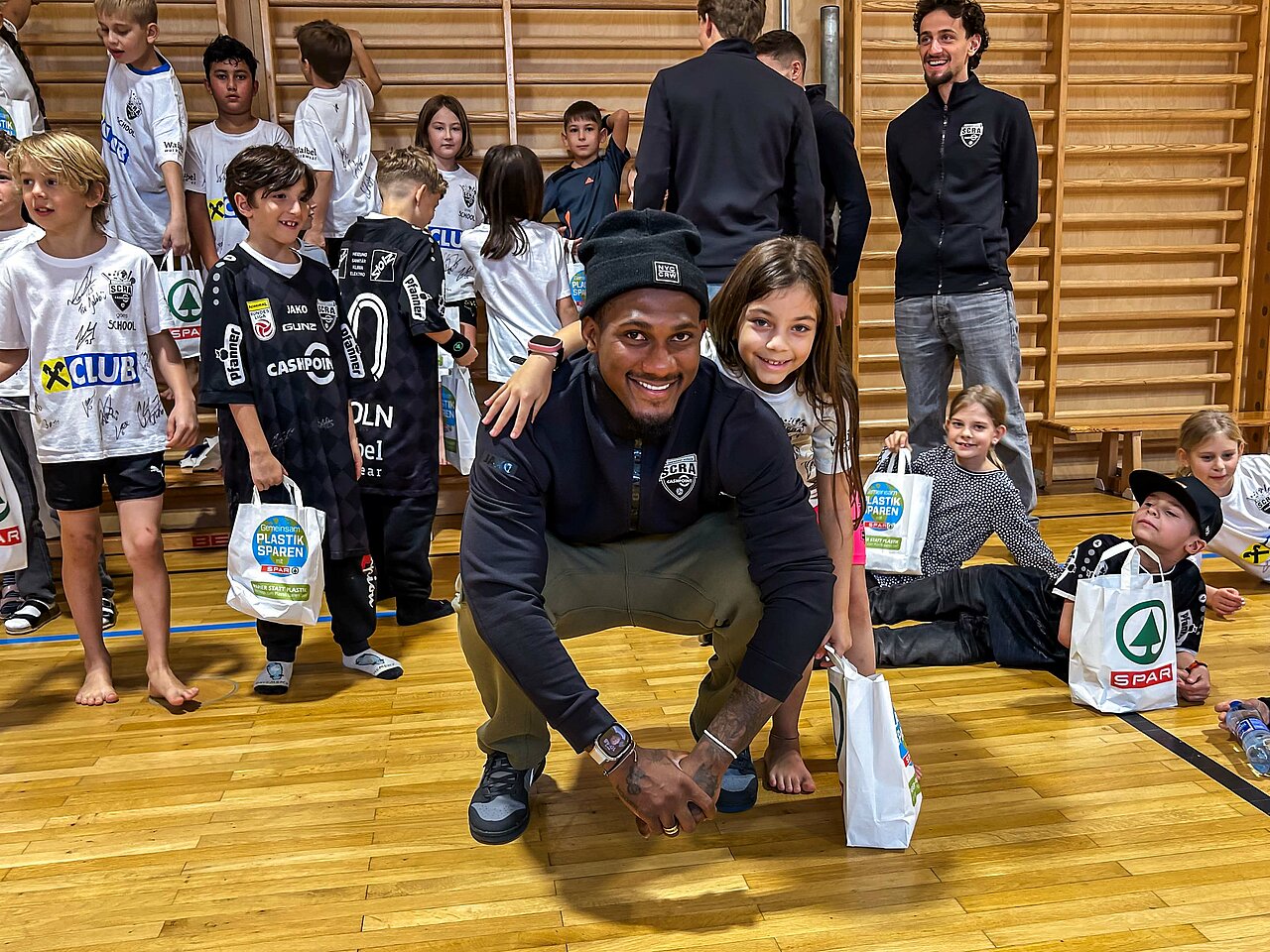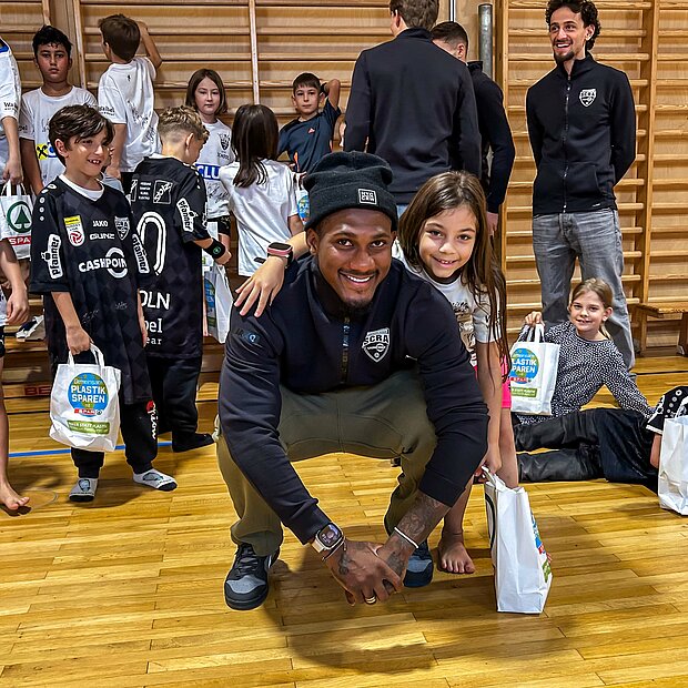 Die Kinder hatten nicht nur die Möglichkeit, die Spieler des SCR Altach hautnah zu erleben, sondern auch aktiv mit ihnen Zeit zu verbringen. In den Turnsälen und Klassenzimmern sorgten die Profis für Spaß und Begeisterung. Spielerisch wurde den Schüler*innen vermittelt, wie wichtig Sport und gesunde Ernährung für den Alltag sind.