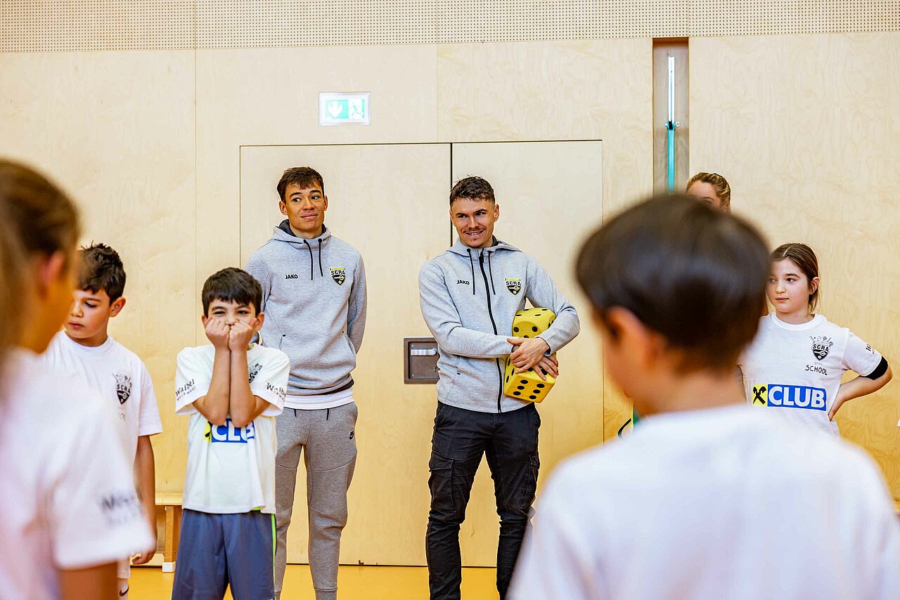Die Kinder der Volksschulen Röthis, Höchst, Egg, Götzis & Bregenz hatten sichtlich Freude mit dem Besuch der SCRA-Kicker!