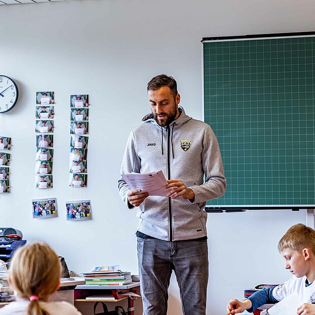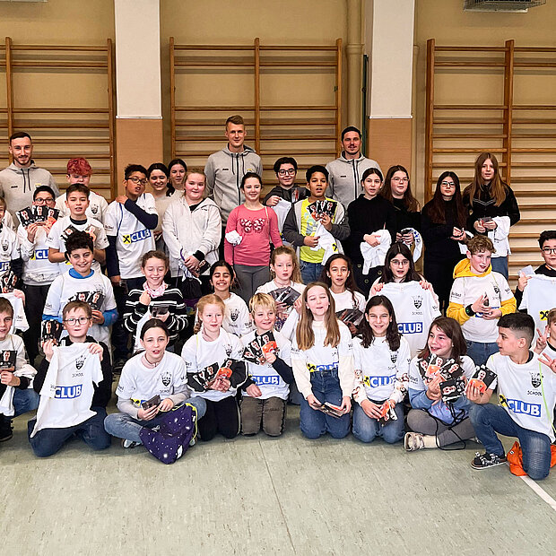 Der SCR Altach war heute Vormittag wieder in den Schulen des Landes unterwegs. Atdhe Nuhiu und Kollegen brachten dabei hunderten von Kindern eine gesunde Lebensweise näher. Beim Sportteil im Turnsaal als auch beim Quiz in der Klasse konnten die Kids ihr Können zeigen.