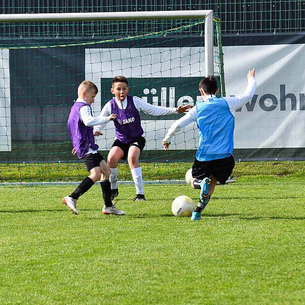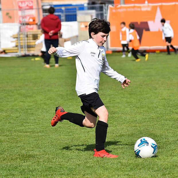 Bei bestem Wetter und bester Laune trainieren seit Montag 60 Kinder in Altach.