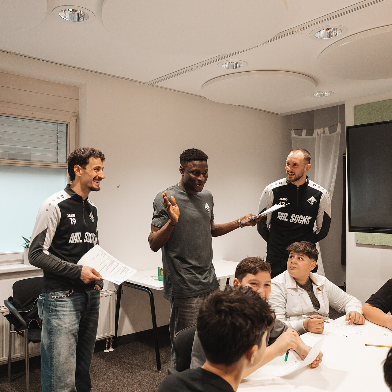 Diesmal tauschten Vesel Demaku, Mohamed Ouedraogo und Daniel Antosch den Trainingsplatz gegen das Lerncafé in Nenzing ein. Dort wurden sie bereits sehnsüchtig von zehn Kindern im Alter zwischen 12 und 15 Jahren erwartet. Die Begeisterung war spürbar – kein Wunder, denn viele der Jugendlichen sind selbst beim Partnerverein FC Nenzing aktiv und brennen für den Fußball.