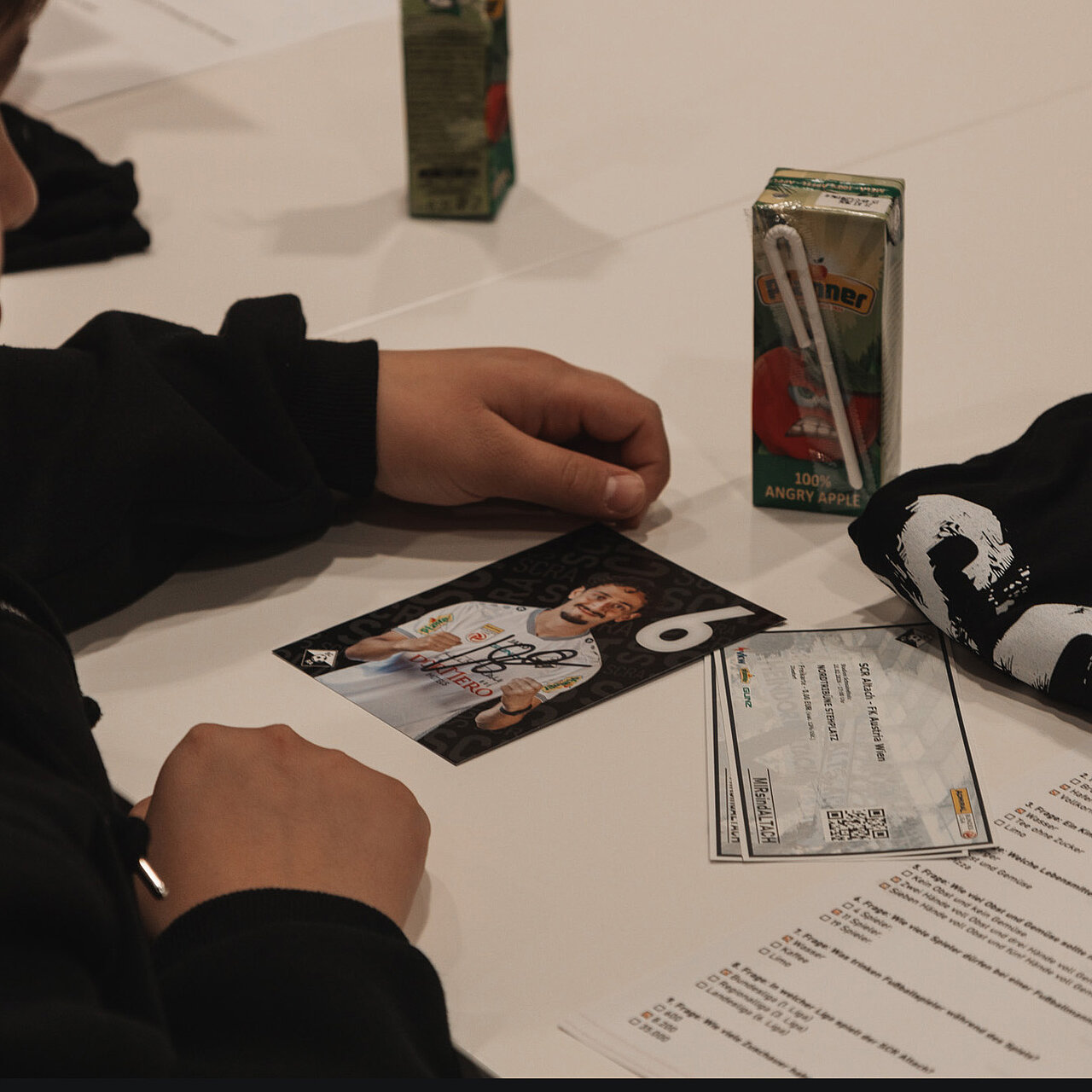 Nach einer lockeren Vorstellungsrunde ging es direkt ans Eingemachte: In einem Quiz konnten die Kids ihr Wissen unter Beweis stellen. Dabei drehte sich alles um gesunde Ernährung, allgemeine Fußballfakten und natürlich Detailwissen rund um den SCRA.