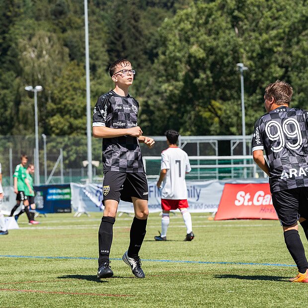 Beim Turnier in St. Gallen lief unser Special Needs Team erstmals in den neuen, schwarzen Trikots auf – ein besonderer Moment, der durch die Unterstützung unserer Trikotsponsoren ermöglicht wurde. Ein herzliches Dankeschön geht an die ARA und Müller Wohnbau, die mit ihrem Engagement einen wichtigen Beitrag dazu leisten, dass unser Team in neuem Glanz auf dem Platz stehen konnte.